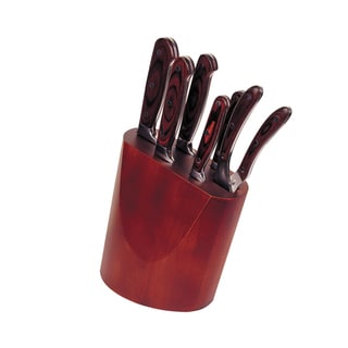 This Cuisinart Pakka Wood Block 8-piece Knife Set is a sleek modern addition to your kitchen and provides the necessary knives for all your everyday food prep. High-carbon stainless steel blades are ideal for all kinds of cutting, and the ergonomically designed wood handles are comfortable in the hand.