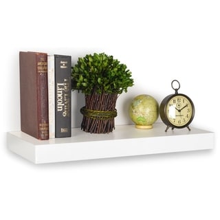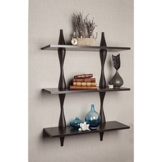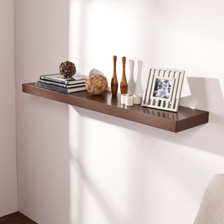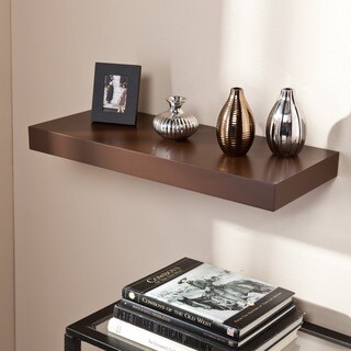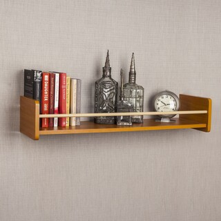 "Danya B™ 24"" Floating Shelf with Metal Railing is perfect as a companion to the 32"" Floating Shelf with Metal Railing or as a stand-alone storage solution. Perfectly suited for any home office, den, living room, kitchen, bath or bedroom this shelf provides simple, sophisticated storage. The metal railing adds style to the shelf while keeping it strong and durable and allows you to better organize and display your items. From glassware and bar tools to bath essentials such as perfume, after shave and hair spray, this wall shelf will allow you to stay organized while adding elegance to your home decor. Made of laminated MDF in rich coastal cedar finish. Minor assembly required.