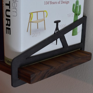 Unique shelf mixes warm coastal cedar finish with retro metal hardware