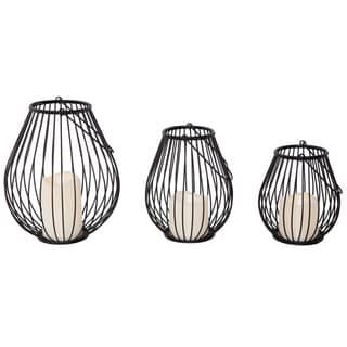 SaleRiver of Goods Modern Indoor/ Outdoor Iron Lanterns with Flameless Candles (Set of 3)