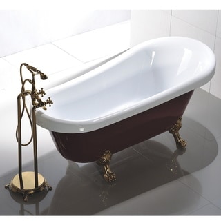 SaleVanity Art Freestanding 67-inch White and Red Acrylic Claw Foot Bathtub