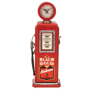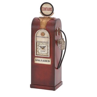 Shaped like a Route 66 antique gas pump, this clock uplifts the home theater, game room or special office corner. Ideal for someone that appreciates unique decor, the clock features Roman numerals and a circular housing.- Color: Red