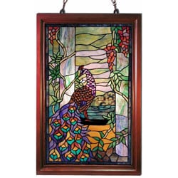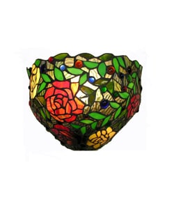 - Shade contains pieces of stained glass that are cut by hand and wrapped in fine copper foil