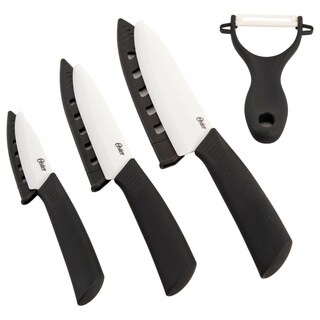 Perfect for those who love to be in the kitchen, this Dr. Tech knife set includes four knives and a peeler. Ceramic knives are sharper and lighter compared to carbon or stainless steel blades and will not rust or stain.- Blade material: Ceramic