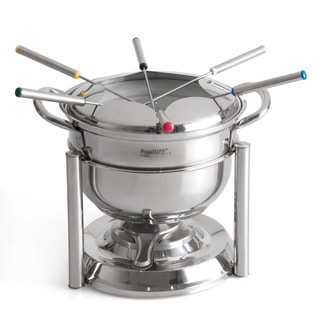 The E-ware electric fondue pot set is great for any occasion, it comes with a stainless steel pot with glass lid, a rotating ring, six sauce cups and six fondue forks.