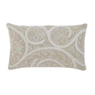 Update your living room or bedroom with this fashionable Odyssey throw pillow. Featuring an oblong rectangular shape, this knife edge pillow is covered with cotton fabric and filled with plush polyester. The neutral khaki background is accented with an intricate ivory embroidered border for a charming finishing touch.| Caractéristiques | |