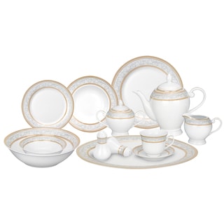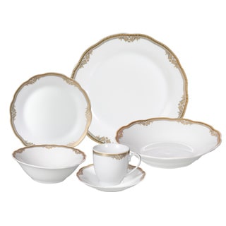 SaleLorren Home Trends 57-piece Porcelain Gold Accent Dinnerware Set