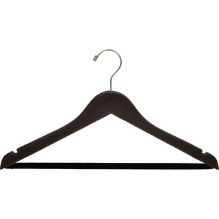 Made from fine hardwood, these well-constructed hangers have a matte espresso finish and brushed chrome hardware. This style features a space-saving flat body, two carefully crafted notches for the option of hanging straps and a bent end swivel hook in brushed chrome. With a special matte finish to prevent splintering, these high quality, low cost hangers have been manufactured to last you a lifetime.| Caractéristiques | |