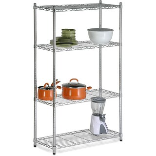 This four-tier NSF Certified shelving unit features chromed steel ventilated shelves that adjust by one inch increments. The durable shelves hold up to 600 pounds each.- Materials: Chromed steel