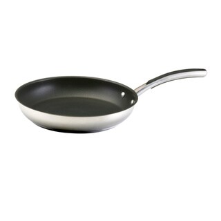 This stylish Farberware High Performance Nonstick Stainless Steel 10-Inch Skillet is sure to become the most popular pan in the kitchen. Since 1900, Farberware has brought performance, convenience, and style to countless kitchens, and this large skillet holds true to that tradition while improving upon it with technology for a new generation. Durable stainless steel construction delivers fast, thorough heating and long-lasting beauty. The unique SmartGlide™ Nonstick System combines a dimpled cookware surface with top-quality nonstick to boost durability and create air pockets that transfer heat to foods quickly while helping to prevent hot spots that can scorch. This nonstick skillet is ready to cook a bacon and green onion frittata, wilt spinach and garlic, or sear a few tri-tip steaks. Its sturdy handle with a stylish stainless steel inlay provides a comfortable grasp. Oven safe to 350 degrees Fahrenheit and dishwasher safe, this skillet complements sets, specialty pans and other pots throughout the Farberware® collection. With a beautiful stainless steel exterior and beneficial nonstick interior, the Farberware High Performance Nonstick Stainless Steel 10-Inch Skillet is the go-to pan for every meal.- Dimensions: 18 inches x 10 inches x 4 inches