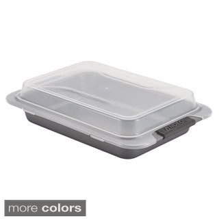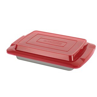 Transporting baked goods is easier than ever with the Farberware Nonstick Bakeware 9-inch x 13-inch Covered Rectangular Cake Pan. Farberware has provided more than a century of reliability, value, and performance to generations of home bakers, and upholds that tradition with every piece of sturdy and dependable bakeware. Featuring heavy-duty construction, the durable rectangular pan with lid reliably resists warping and heats evenly to brown beautifully and help reduce hot spots that can burn baked goods. The convenient and sturdy plastic lid makes it easy to take a birthday cake to a family party, or lasagna to a neighbor's house, while preserving both appearance and freshness. This cake pan's nonstick inside and out delivers great food release with quick cleanup. Oven safe to 450 degrees Fahrenheit, this nonstick cake pan makes an ideal addition to mini muffin, loaf and other baking pans in the Farberware Bakeware collection. Take baked goods along to special events, and keep them fresh and looking good, with the Farberware Nonstick Bakeware 9-inch x 13-inch Covered Rectangular Cake Pan.| Caractéristiques | |