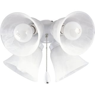 This ceiling fan kit features a beautiful white finish that looks great in any setting with any decor. This fixture also includes four bulbs for your convenience.- Setting: Indoor