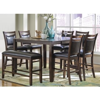 Gorgeous and contemporary, this delightful counter height dining bench offers a variety of comfort and utility that works great in any modern setting. The dark finish is sure to pop against any decor while complemented by the leatherette seat.