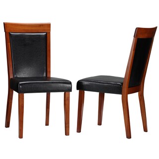 SaleCortesi Home Texas Dining Chair in Antique Cherry Finish Wood and Black Leatherette Seat (Set of 2)