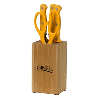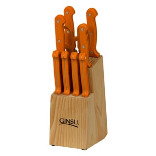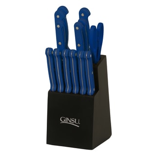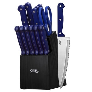 This Ginsu Essential Series 14 piece cutlery set includes: 8-inch chef knife, 8-inch slicer, 7-inch santoku, 5.5-inch boning knife, 4.5-inch utility knife, (6) 4.5-inch steak knives, 3.5-inch paring knife, kitchen shears and black storage block. When we take a closer look at what makes these knives modern and attractive, you can't help but notice the patented serration technology on both sides of the blades. That lets you comfortably cut food if you're left- or right-handed and make a clean cut without tearing your food apart. Constructed from high-quality stainless steel, these knives are incredibly low maintenance and will never need sharpening.| Caractéristiques | |