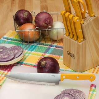 Ginsu's Essentials Series 14-piece cutlery set features colorful, traditional Japanese style handles that are balanced and comfortable to hold. Ginsu blades are constructed from stainless steel and feature a two-dimensional serrated edge that is symmetrically cut on either side for more accurate slicing and for either right- or left-handed use.| Caractéristiques | |