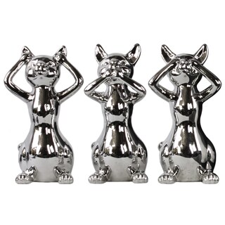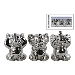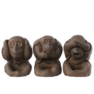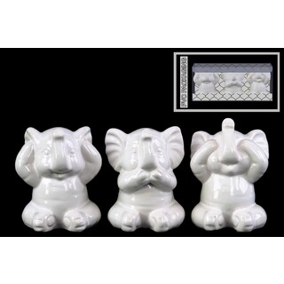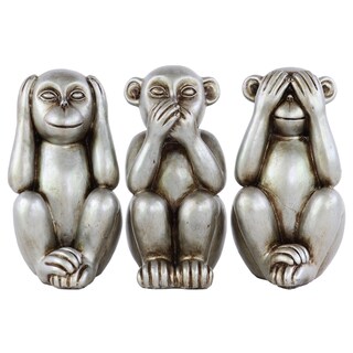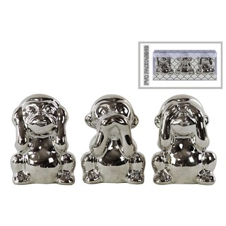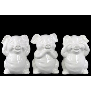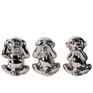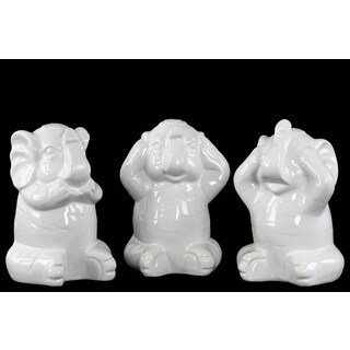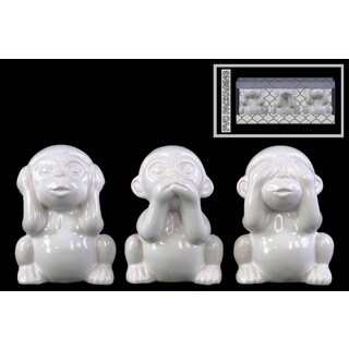 Glossy White Finish Ceramic Sitting Monkey No Evil Figurines (Set of 3)