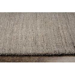 nice abrash ranging from darker yarns to lighter in this solid warm grey rug. size accurate. I wish it were slightly thicker but the advertized thickness of .5 inches is accurate.