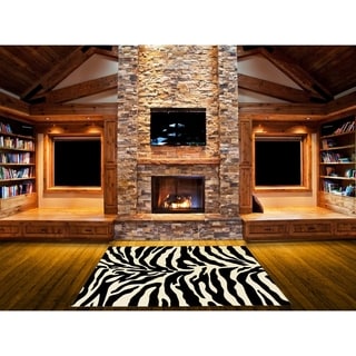 SaleHand-tufted Black/White Zebra Animal Print Glamorous Wool Rug (8' x 11')