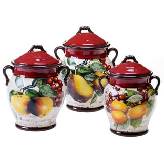 Maximize your kitchen space with the versatile beauty and durability of the Harvest Canister set. The rich, lush colors and fresh summer fruits in sunny hues evoke a bountiful orchard. From sugar and spice to everything nice, these canisters look great while keeping ingredients fresh.| Caractéristiques | |