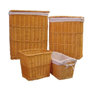 A light weight yet sturdy wicker construction allows for easy transportation of laundry. The double basket set makes laundry sorting easy, and the woven construction makes these hampers both durable and stylish.