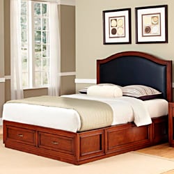 Create distinctive style with this modern platform storage queen-sized bed. This bed boasts mahogany solids and cherry veneers which are warmed with a neoteric seven step cherry finish.| Caractéristiques | |