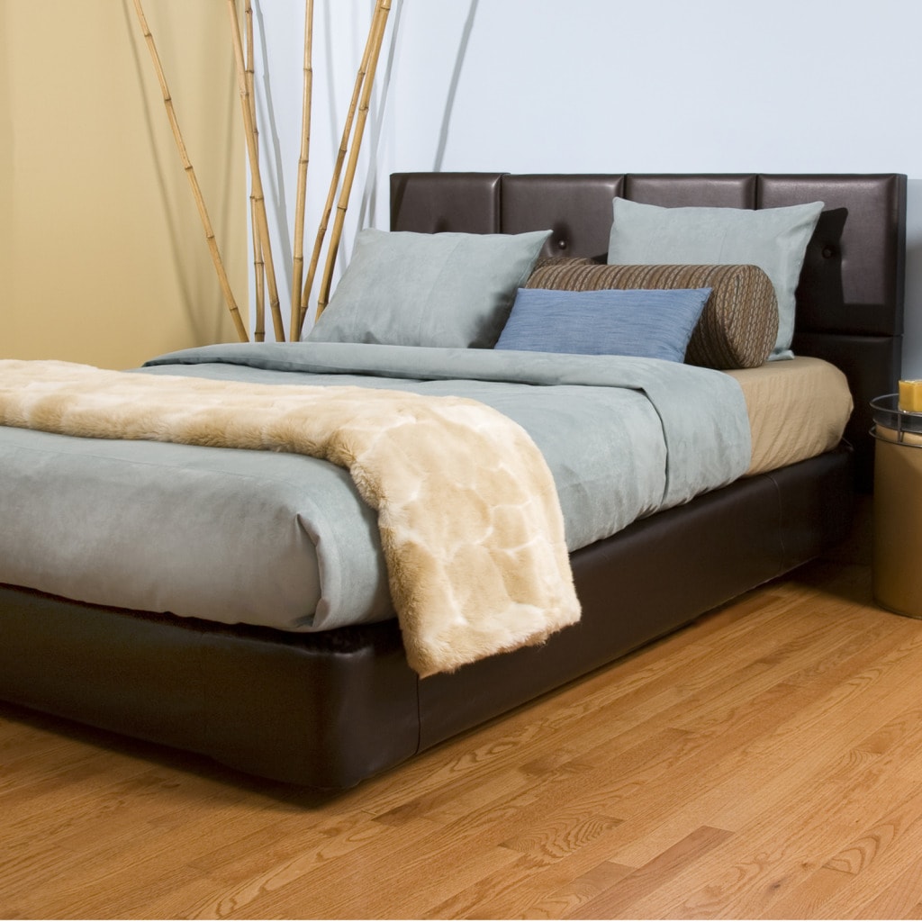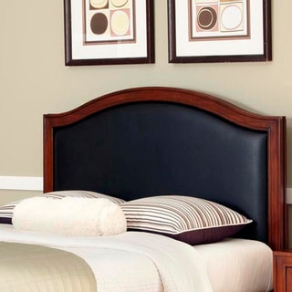 Outfit your bedroom with the modern yet classic combination of wood and leather with the Duet queen panel leather-inset headboard. Cherry veneer and mahogany solids comprise the sturdy wood portions of the headboard, embellished with a rich seven-step cherry finish.Customize the look of your bed with this dual-look headboard -- display it one way for a straight top, or flip the straight side down to the bottom to unveil an arched design. The dark brown leather inset is fully padded, offering a comfortable support for your back as you read or watch TV in bed.