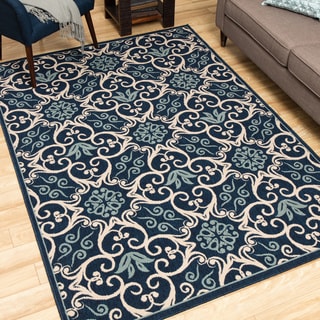 SaleRug Squared Jupiter Indoor/Outdoor Navy Rug (5'3 x 7'5)