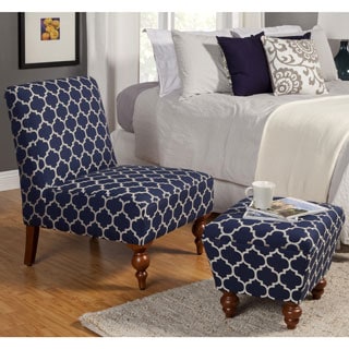 SaleHomePop Slipper Blue/ Cream Quatrefoil Accent Chair and Ottoman