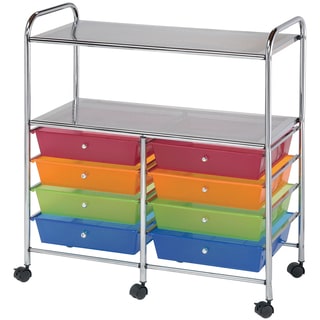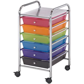 Keep your craft room or home office organized with this convenient Honey-Can-Do 12-drawer rolling cart. Store fabric, gift wrap accessories, craft paper and tools in the spacious, semi-transparent drawers, which provide easy visibility of contents so you can quickly locate and retrieve the materials you need. A convenient top surface provides space for measuring and cutting gift wrap, craft paper or fabric.With its steel frame, this durable rolling cart ensures years of use. Rolling casters let you move the cart anywhere you want it, while the locking feature ensures the cart stays in place.