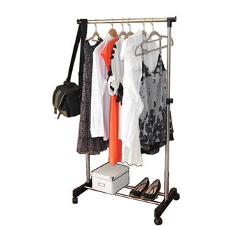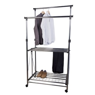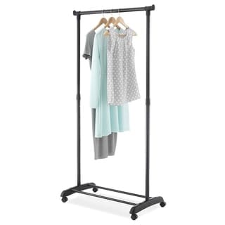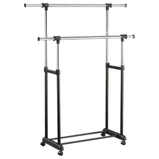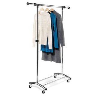 Organize your wardrobe with this expandable garment rack by Honey-Can-Do. Use the rack in your bedroom to expand upon the possibilities of your available closet space. In the laundry room, hang clothes fresh out of the dryer to prevent wrinkling or even hang more delicate clothing and sweaters to air dry. The rack is also expandable to accommodate different living spaces.The steel and plastic design of this garment rack makes it strong enough to support significant amounts of clothing. The mounted caster wheels of this rack give it easily mobility with minimal effort, even down a hallway.