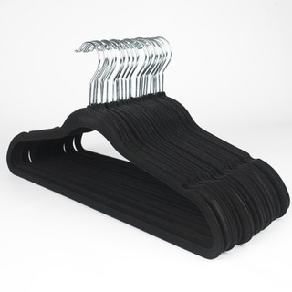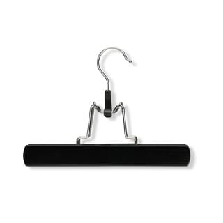 Honey-Can-Do HNGT01199 6-Pack Vinyl-Coated Open Hanger, Chrome/Black. This contemporary, vinyl-coated hanger is perfect for all your bottoms in a convenient 6-piece pack. Vinyl coating is gentle on delicate garments and provides a non-slip surface that holds fabrics beautifully in place. The smart, open-access bottom bar lets you hang pants, skirts, or quilts quickly and easily.| Caractéristiques | |