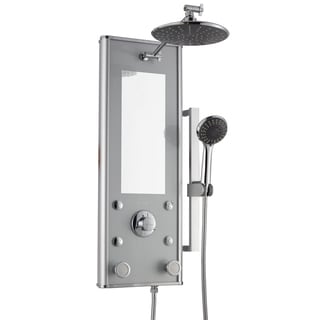 SaleAston 57-in Stainless Steel and Glass 4-Jet Multifunction Massaging Luxury Shower Panel Tower