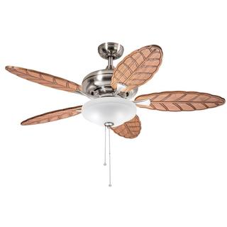 Bring a small piece of the Caribbean into your home with this 54-inch ceiling fan. The five textured white finish wicker style blades swirl air to cool you off on even the hottest tropical day. Charming and easy to install, this 5-Blade ceiling fan comes with a light kit to illuminate the room. The fan features a WhisperWind motor to keep your home quiet.- Materials: Wood