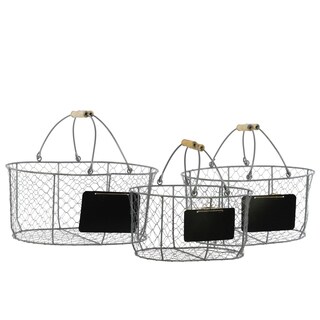 SaleSilver Metal Wire Basket Oval with Mesh Sides Wood Handles and Black Name Plate (Set of 3)
