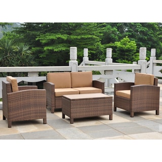 SaleInternational Caravan Barcelona Resin Wicker/Aluminum Settee Set with Cushions (Set of 4)