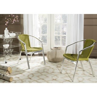 SaleSafavieh Wrangell Indoor Outdoor Green PE Wicker Stacking Armchair (Set of 2)
