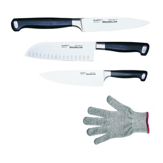 This 3-piece starter set from J.A. Henckels International includes a 3-inch paring knife, 6-inch utility knife, and an 8-inch chef knife. Double-riveted handles are enhanced by brushed stainless steel accents and are rust and corrosion resistant.