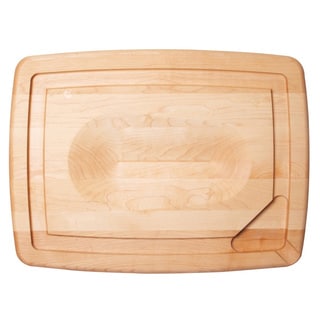 Ideal for cutting red meat, this solid maple wood carving board has permanently installed steel spikes to hold the meat in place. The cut-out grooves on this wood carving board drain the meat juices into a small well, where they can easily be collected for use in sauces or other recipes.| Caractéristiques | |