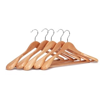 Constructed with broad arms and a curved profile, this deluxe beech wood hanger preserves and protects your wardrobe beautifully. Sophisticated styling and practical design make it a welcome and useful addition to any closet or armoire. The solid beech wood is strong and durable enough to hold even heavy coats or jeans. This wide shoulder coat hanger is about 16 wide and 1.8 thick.| Caractéristiques | |