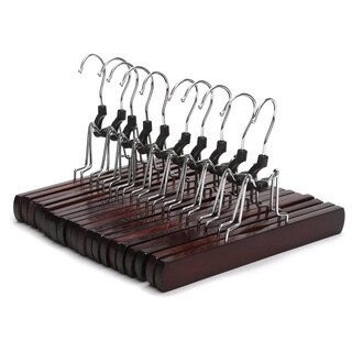 This kind of wooden men's suit hanger is very popular for their fashionable appearances and reasonable price. With a space-saving body, it can help you store kinds of men's suits, coats, trousers in your closet. Each clothes hanger featured with a polished chrome hooks swivels 360 degree for flexible use. The wooden bar can hold pent. We have strictly control every process to make sure the quality is top in our industry.| Caractéristiques | |