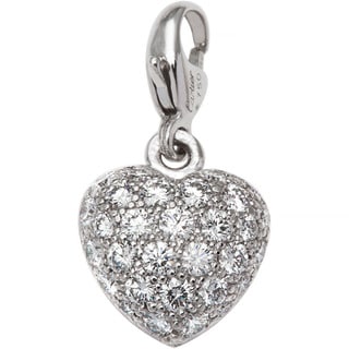 Sale18k White Gold 1/2ct TDW Diamond Heart Motif Cartier Estate Baby Charm (F-G, VS1-VS2)