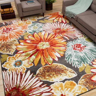 SaleContemporary Modern Floral Flowers D.Grey Area Rug (7'10 x 10'2)