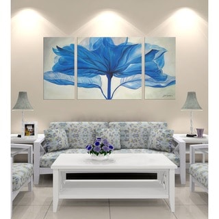 SaleHand-painted 'Blue Flower' Gallery-wrapped 3-piece Art Set