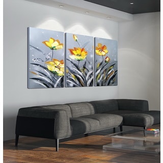 Sale'The Blooming Yellow Flowers' 3-piece Hand-painted Gallery-wrapped Canvas Art Set