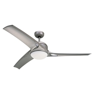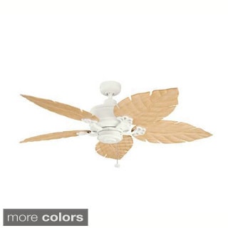 This 52 inch ceiling fan features a brushed nickel finish and birch colored leaf shaped ABS blades that will compliment many casual and transitional decors. Includes 2-light kit with white etched glass that softens the light and completes the look.