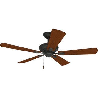 This Circolo II collection 52-inch 5-blade ceiling fan features a olde bronze finish. It has reversable cherry and walnut blades with a 14 degree pitch. This attactive fan will compliment many contemporary decors. 3-speeds forward and reverse controlled by a pullchain switch. Motor type and size: 172mm x 15mm AC. Dimensions with included 4-inch downrod: 14.5 inches high x 52 inch diameter. With with 12-inch included downrod: 20.5 inches high x 52 inch diameter.| Caractéristiques | |