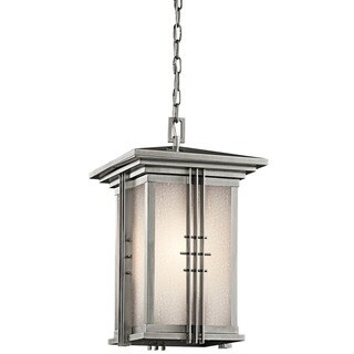 This Cross Creek collection 1-light outdoor pendant ceiling light features an olde bronze finish that will compliment many outdoor decors. The textured linen seedy glass adds a warm ambient glow . Sturdy cast aluminum construction. Dimensions: 14.5 inches high x 11.5 inch diameter.| Caractéristiques | |
