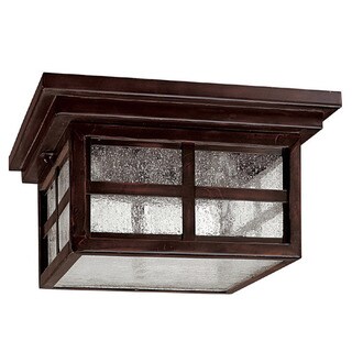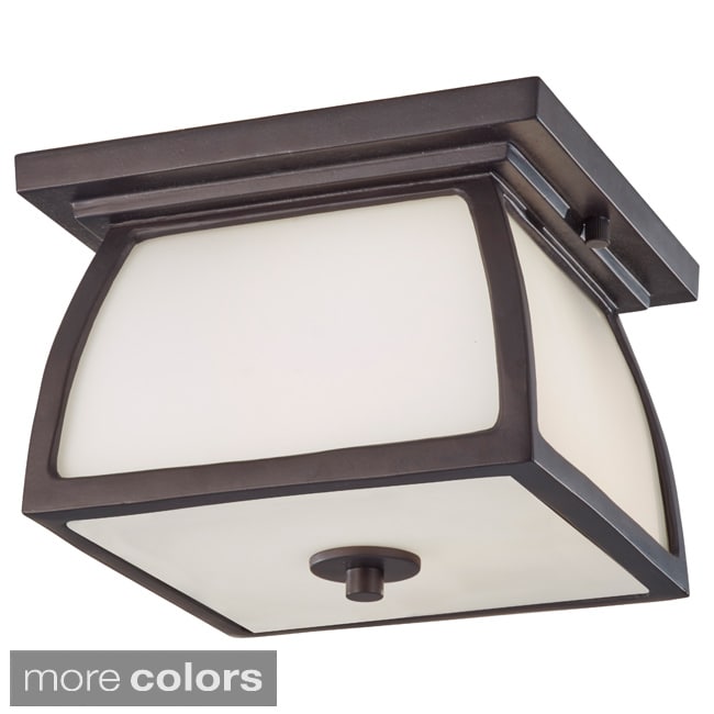 This Riverbank collection 2-light outdoor flush mount ceiling light features an aged bronze finish that will compliment many outdoor decors. The white linen mist glass adds a romantic glow. Sturdy cast aluminum construction. Dimensions: 5.25 inches high x 9.5 inch diameter.| Caractéristiques | |