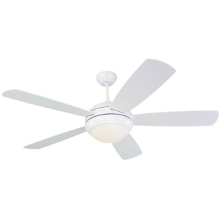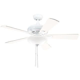 This Sutter Place Select collection 42-inch 5-blade ceiling fan features a white finish, white blades with a 12-degree pitch and removeable light with white alabaster glass. This fan will complement many traditional decors. Pull chain features 3 forward speeds and manual reverse .| Caractéristiques | |